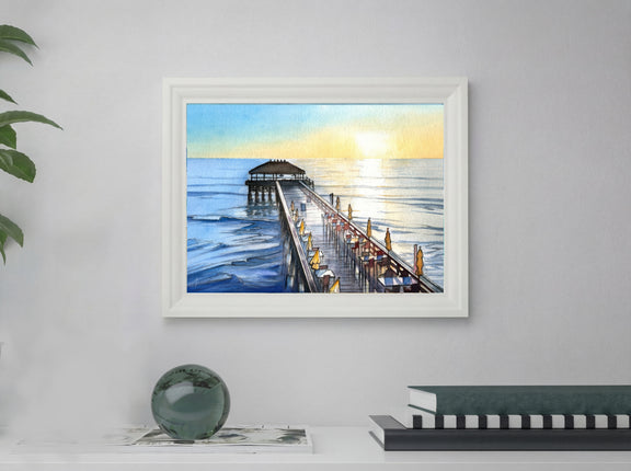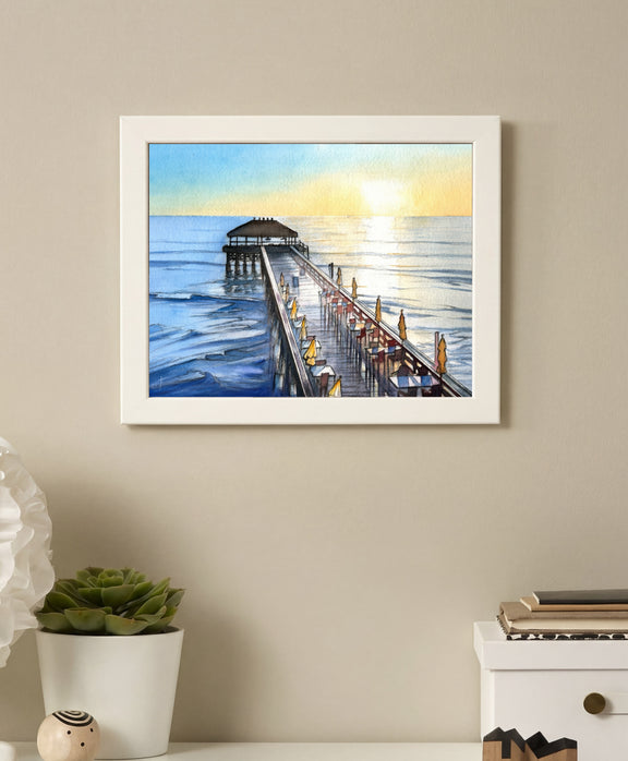 Cocoa Beach Pier at Sunrise – Watercolor Art Print
